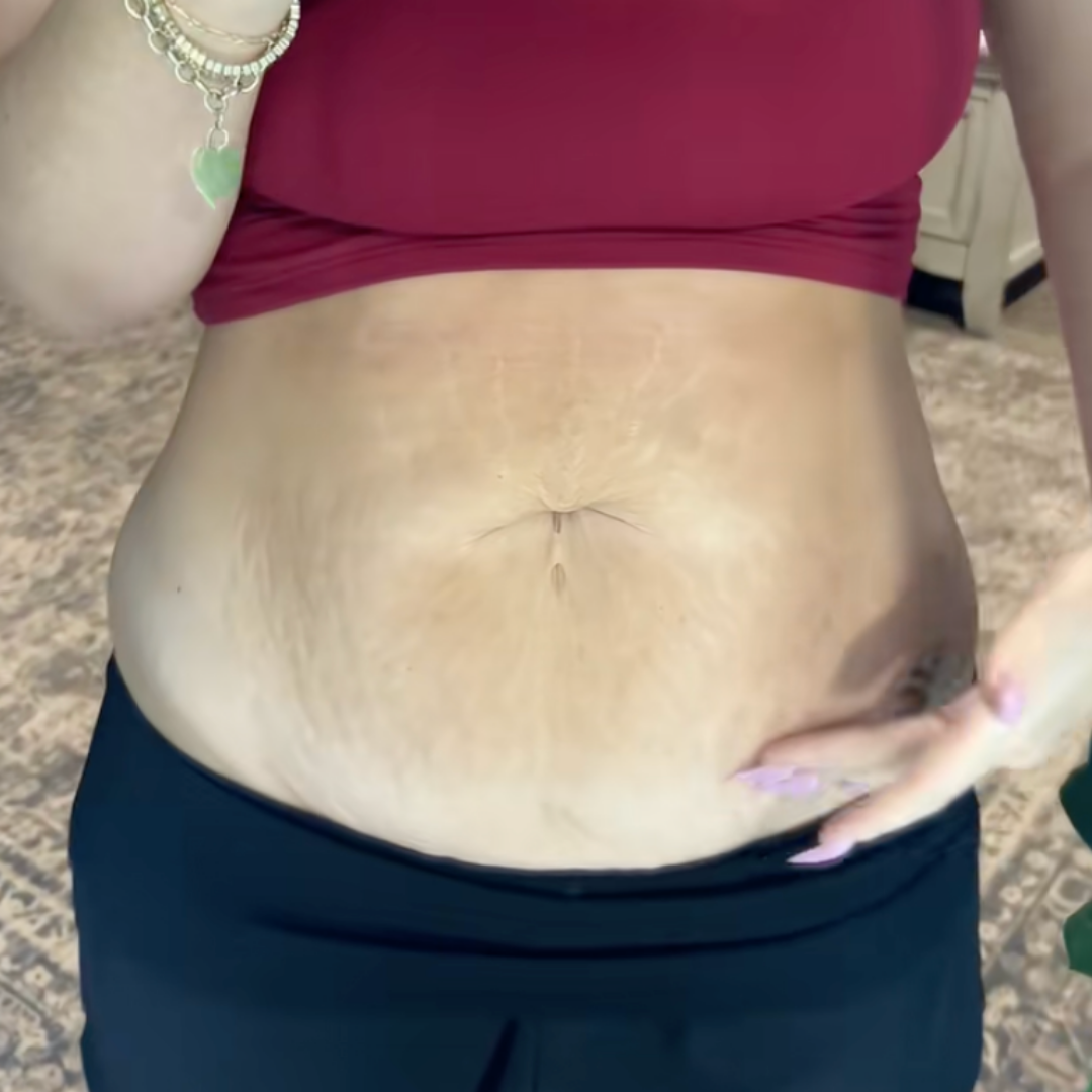 Although I’ve only been using this for 30 days, and of course they’re not completely gone, my stretch marks are noticeably lighter — I’m so encouraged!
